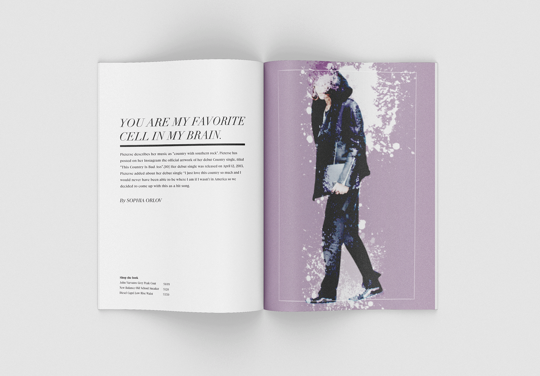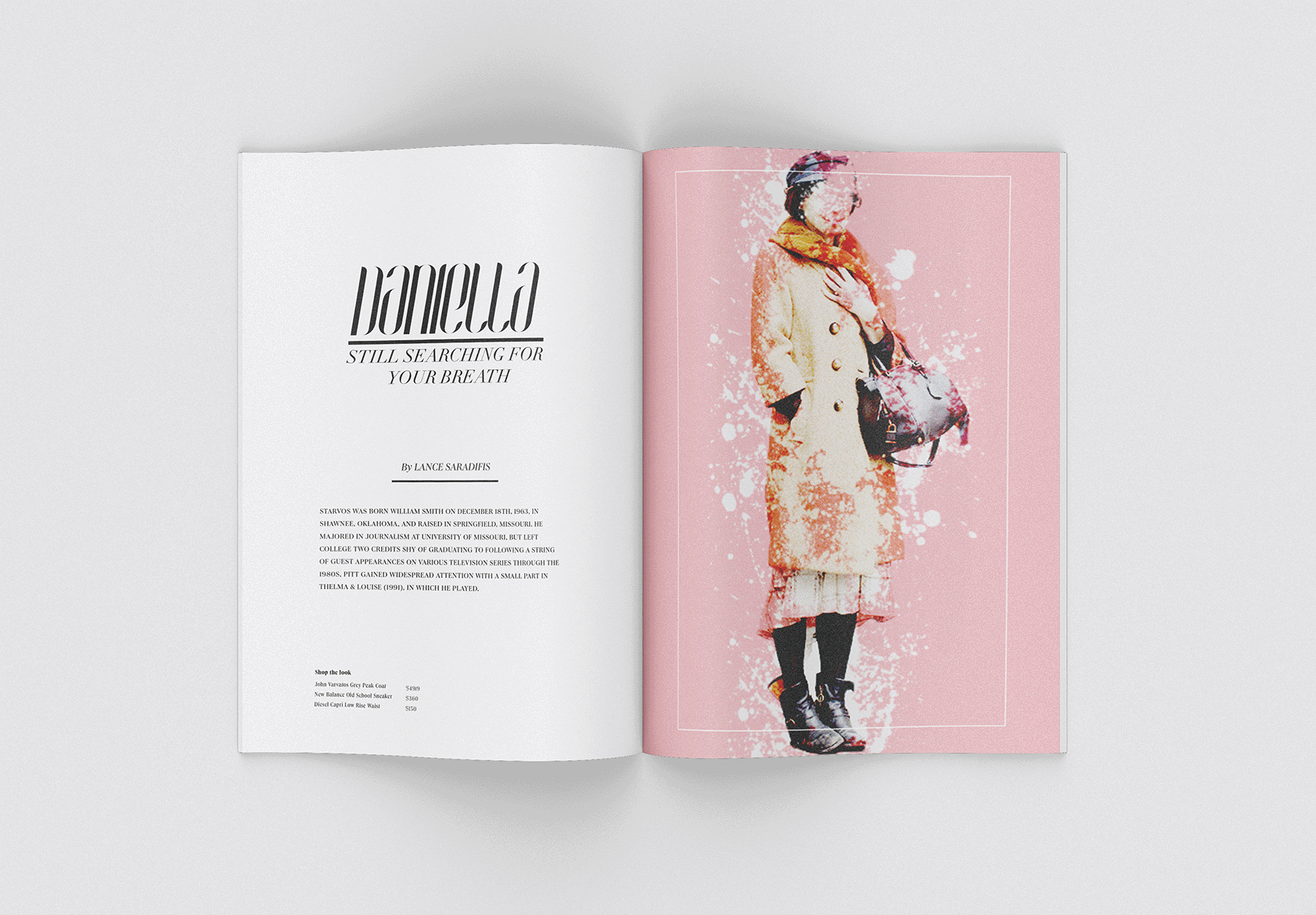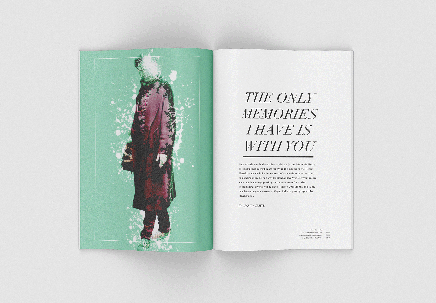 Anonymity explores the tension between exposure and concealment. Each spread pairs a real interview — rewritten in a poetic, melancholic voice — with fashion photography where the subject's identity dissolves behind paint splatter and mixed media textures. The editorial balances intimacy with anonymity, letting readers connect with the words without ever seeing a face. A 'shop the look' section grounds each spread in something tangible — brand, garment, price — bridging raw storytelling with commercial fashion editorial.